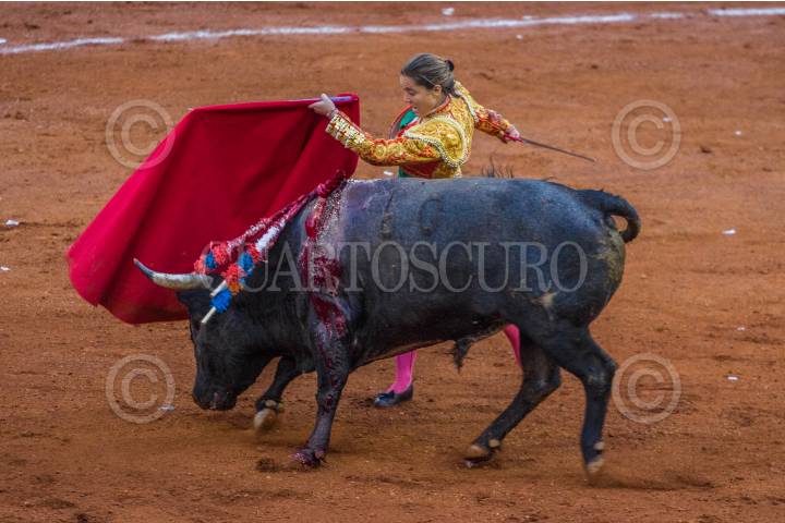 CIUDAD DE MÉXICO, 09OCTUBRE2016.- Tarde fría en la Monumental Plaza de Toros México. De los tres novilleros que lidiaron hoy, sólo José María Pastor logró las ovaciones del público. Rocio Moreli y André Lagravere se mostraron torpes y faltos de temple. En la imagen, Rocío Moreli, quien se llevó abucheos en su segunda faena. FOTO: DAVID POLO /CUARTOSCURO.COM