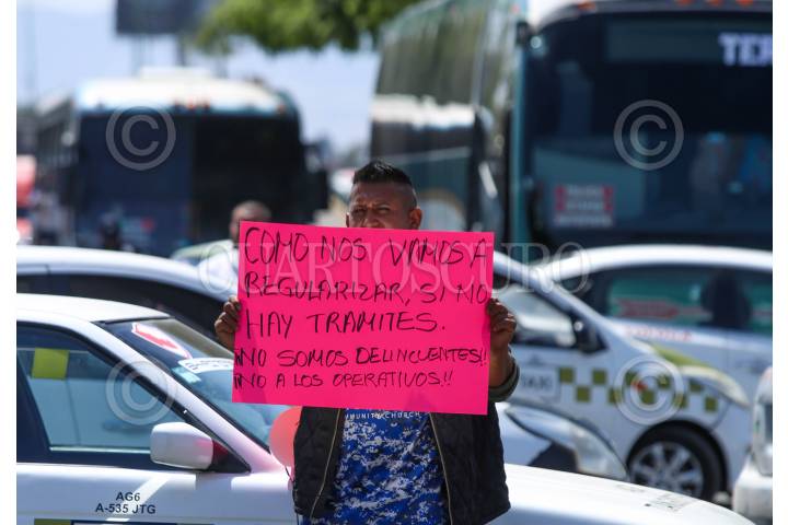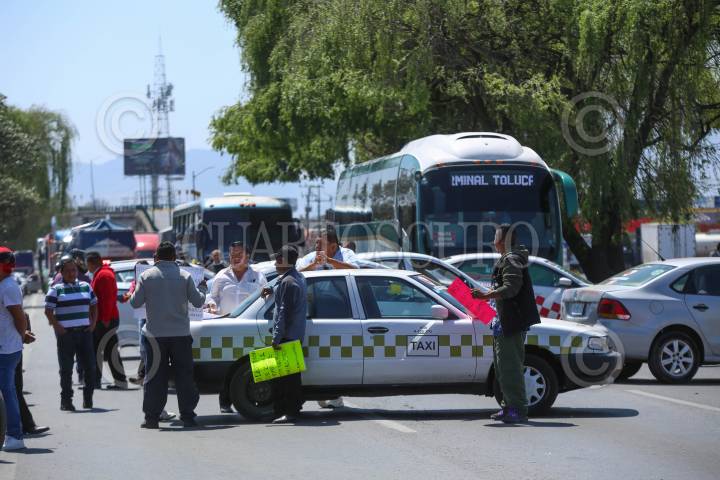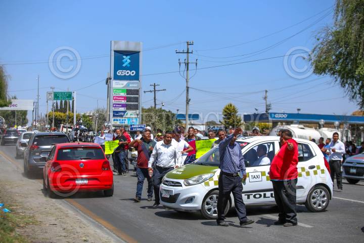MEXICALTZINGO, ESTADO DE MÉXICO, 13MARZO2025.- Taxistas de Calimaya, San Antonio la Isla, Chapultepec, Rayón, Almoloya del Río, Tianguistenco y Mexicaltzingo bloquearon la carretera Toluca-Tenango en ambos sentidos derivado de la detención de algunos de sus compañeros y la retención de unidades durante un operativo implementado por parte de la Secretaría de Movilidad. FOTO: CRISANTA ESPINOSA AGUILAR /CUARTOSCURO.COM
