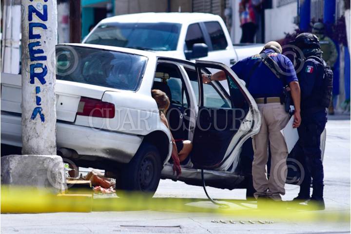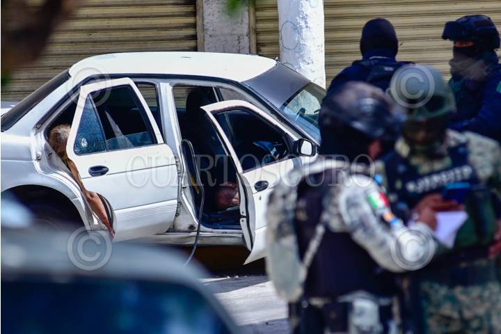 ACAPULCO, GUERRERO, 30JUNIO2024.- Esta tarde dos personas fueron asesinadas y una más resultó herida en un ataque armado a un taxi colectivo en el centro de Acapulco, el lugar fue resguardado por la Guardia Nacional, policías y soldados para que se realizará el peritaje. FOTO: CARLOS ALBERTO CARBAJAL/CUARTOSCURO.COM