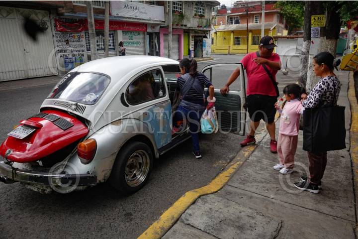 CIUDAD DE MÉXICO, 22JULIO2024. En Cuautepec de Madero, CDMX, el Volkswagen Sedán, conocido como "vocho", es el protagonista del transporte local, con 1,500 en operación. Un conductor puede hacer hasta 50 viajes diarios, cobrando entre 20 y 50 pesos por trayecto. A pesar de operar en una zona legalmente ambigua, estos vehículos son esenciales para la comunidad. FOTO: ROGELIO MORALES/CUARTOSCURO.COM