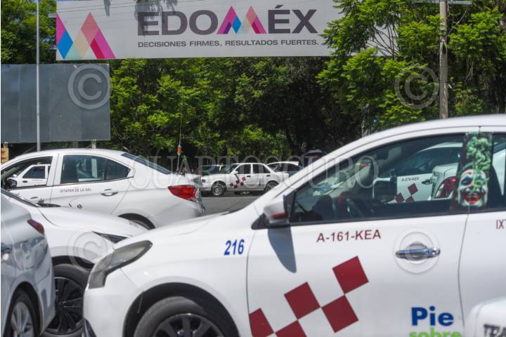MEXICALTZINGO, ESTADO DE MÉXICO, 13MARZO2025.- Taxistas de Calimaya, San Antonio la Isla, Chapultepec, Rayón, Almoloya del Río, Tianguistenco y Mexicaltzingo bloquearon la carretera Toluca-Tenango en ambos sentidos derivado de la detención de algunos de sus compañeros y la retención de unidades durante un operativo implementado por parte de la Secretaría de Movilidad. FOTO: CRISANTA ESPINOSA AGUILAR /CUARTOSCURO.COM