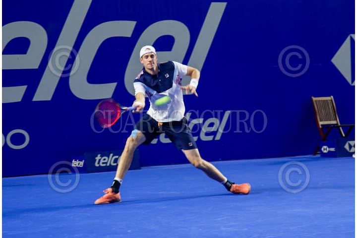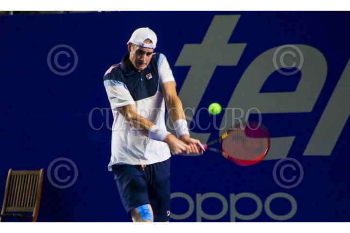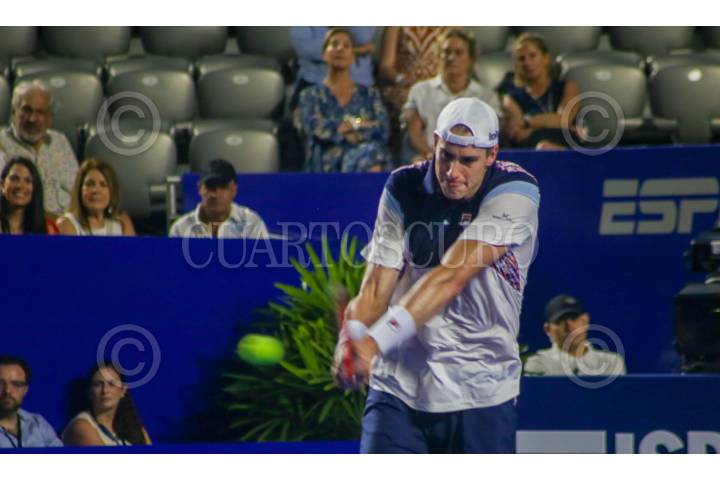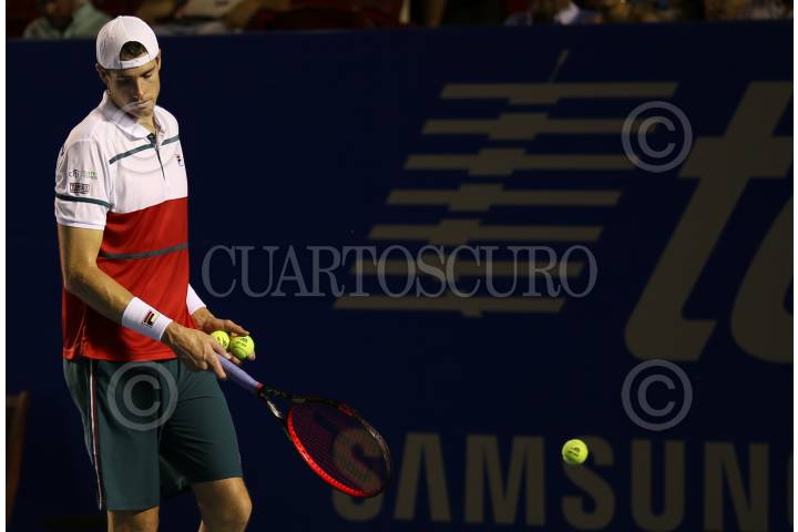 John Isner durante su encuentro contra Taylor Fritz en las seminifales del Abeirto Mexicano de Tenis.