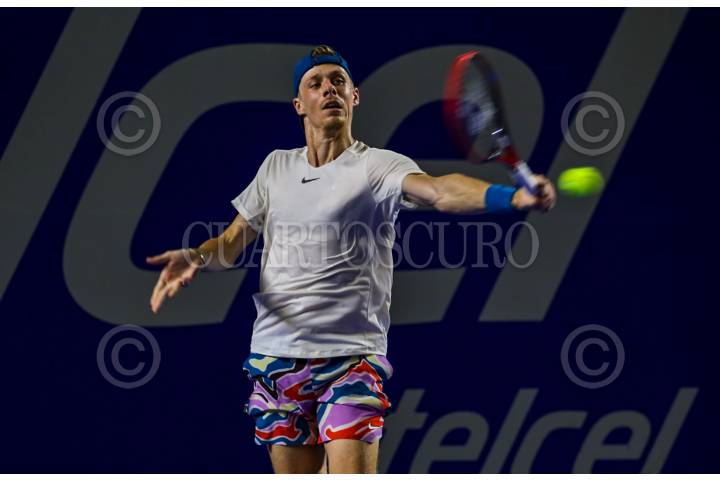 Taylor Fritz (banda blanca en la cabeza) de los Estados Unidos venció dos sets a cero al canadiense, Denis Shapovalov (gorra azul). Con esta victoria se perfila como uno de los favoritos en el Abierto Mexicano de Tenis de Acapulco.