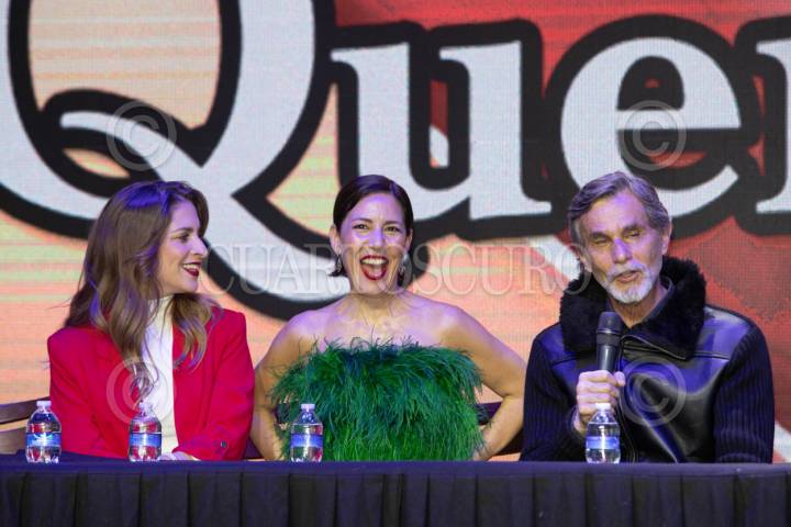 Ivonne Zurita, Sthephanie Salas y Humberto Zurita durante la conferencia por la segunda temporada de la obra "Papito Querido" en el Teatro Centenario Coyoacán.