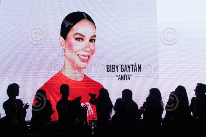 Biby Gaytán durante la presentación del elenco del musical "Amor sin barreras" (West side story), a presentarse en el Teatro Centenario Coyoacán.