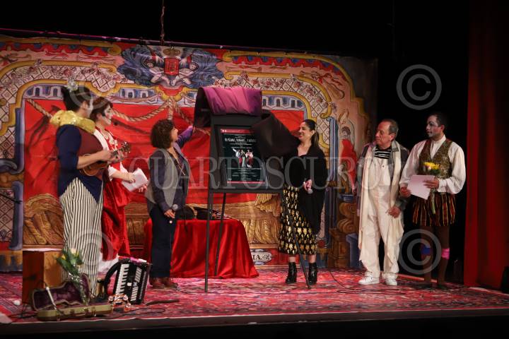 Develación de placa por 7 años de representaciones de la obra “De pícaros, truhanes… y actores”, en el Teatro Sergio Magaña.