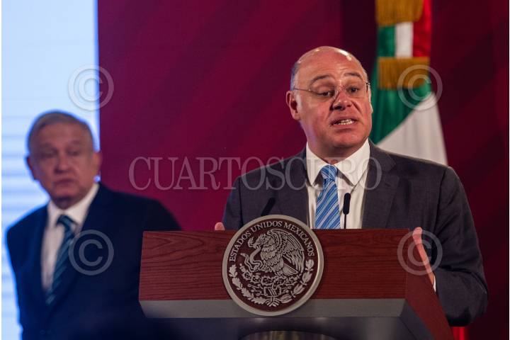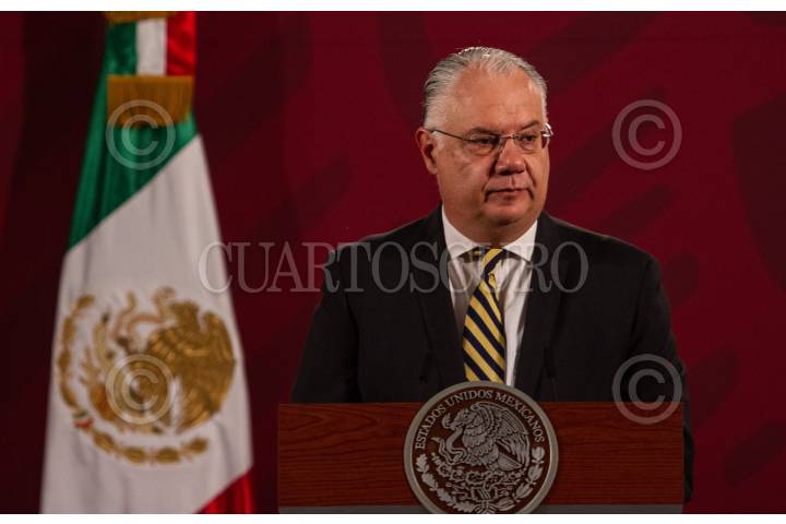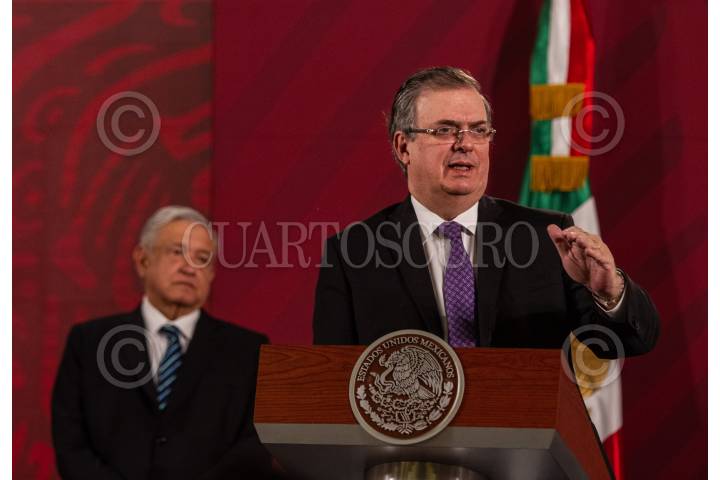 Marcelo Ebrard Cassubon, secretario de Relaciones Exteriores, durante la conferencia matutina en el Palacio Nacional