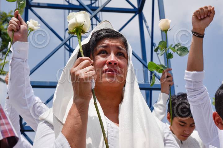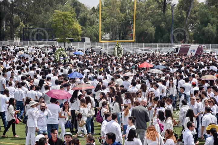 CIUDAD DE MÉXICO, 25SEPTIEMBRE2017.- La comunidad del Tec de Monterrey campus Ciudad de México llevaron a cabo el homenaje póstumo para honrar la memoria de Juan Carlos, Edgar Michel, Alejandro Rubén y Luis Manuel, víctimas del sismo del pasado 19 de septiembre. El homenaje fue realizado en el Centro Cultural y Deportivo de dicha univesidad, en donde acudieron más de 5 mil personas vestidas de blanco. FOTO: MARIO JASSO /CUARTOSCURO.COM