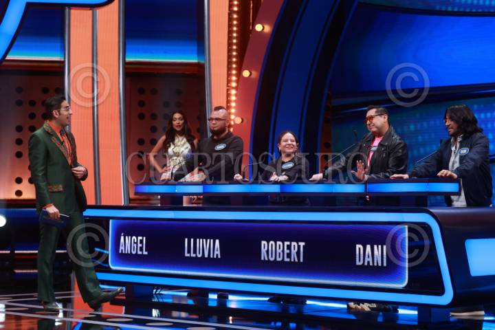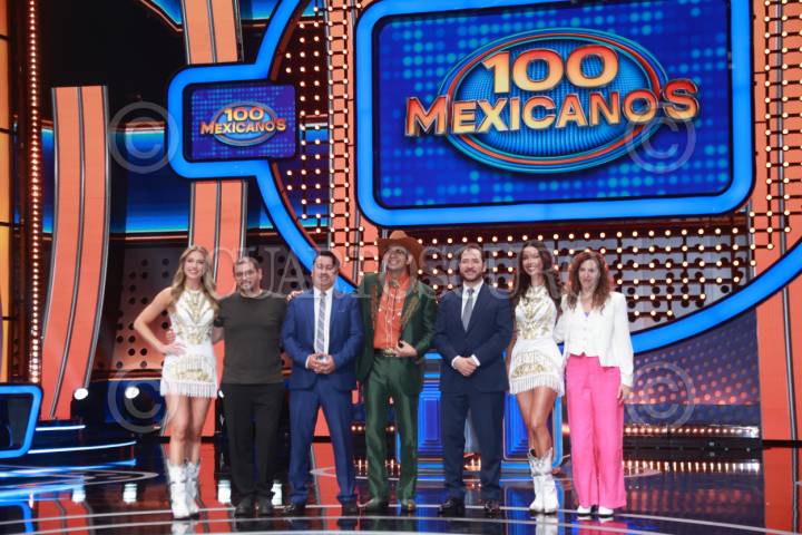 CIUDAD DE MÉXICO, 27MAYO2025. El Capi Pérez junto a Adrián Ortega, Alejandro Esquivel y Johanna Helman durante la presentación de la segunda temporada del programa de concursos “100 Mexicanos”, en Azteca Novelas. FOTO: EDGAR NEGRETE LIRA/CUARTOSCURO.COM