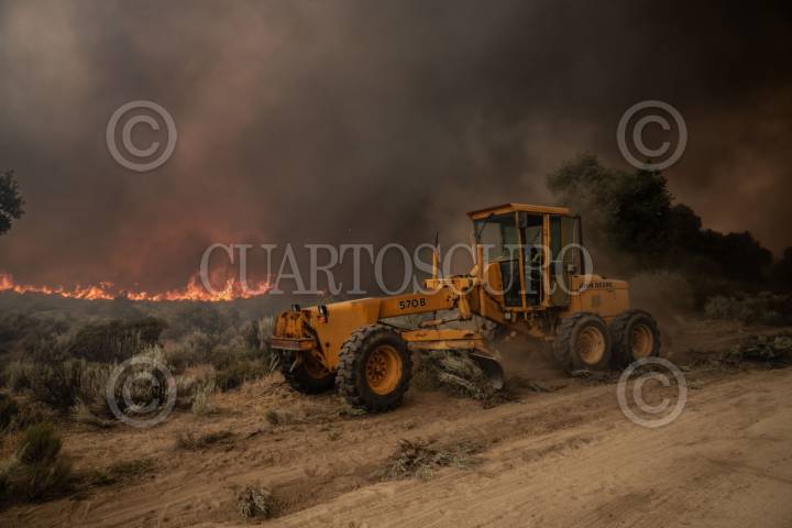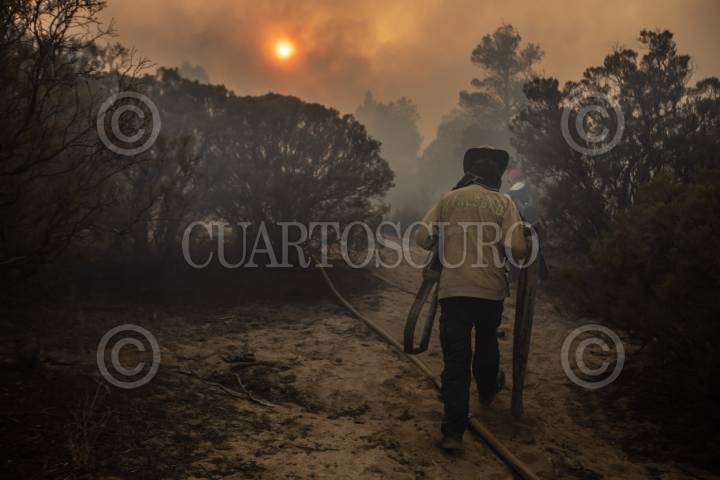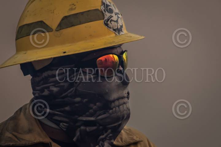 TECATE, BAJA CALIFORNIA, 29JUNIO2025.- Bombero observando el incendio que esta apunto de atacar.Desde el 16 de junio, incendios forestales en Tecate han arrasado más de 12 mil hectáreas, destruyendo viviendas y afectando la flora, fauna y calidad del aire. Con un 70?control, el fuego sigue activo en zonas como La Rumorosa, donde se mantiene la prealerta de evacuación. Más de 200 elementos de emergencia trabajan en la contención. FOTO KAREN CASTAÑEDA/CUARTOSCURO.COM