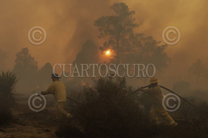 TECATE, BAJA CALIFORNIA, 29JUNIO2025.- Bomberos combaten incendio en el poblado de la Rumorosa. Desde el 16 de junio, incendios forestales en Tecate han arrasado más de 12 mil hectáreas, destruyendo viviendas y afectando la flora, fauna y calidad del aire. Con un 70?control, el fuego sigue activo en zonas como La Rumorosa, donde se mantiene la prealerta de evacuación. Más de 200 elementos de emergencia trabajan en la contención. FOTO KAREN CASTAÑEDA/CUARTOSCURO.COM