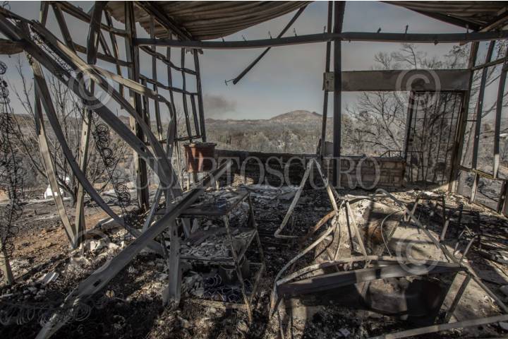 TECATE, BAJA CALIFORNIA, 29JUNIO2025.- Interior de una casa consumida por el incendio en Rancho La Hacienda. Desde el 16 de junio, incendios forestales en Tecate han arrasado más de 12 mil hectáreas, destruyendo viviendas y afectando la flora, fauna y calidad del aire. Con un 70?control, el fuego sigue activo en zonas como La Rumorosa, donde se mantiene la prealerta de evacuación. Más de 200 elementos de emergencia trabajan en la contención. FOTO KAREN CASTAÑEDA/CUARTOSCURO.COM
