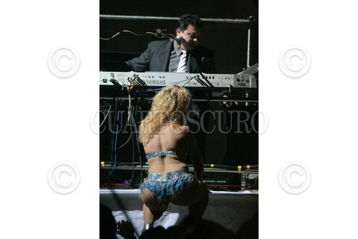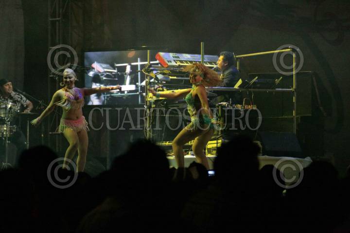 VILLAHERMOSA, TABASCO, 12FEBRERO2011.- El Pulpo de los Teclados con sus bellas bailarinas amenizo la entrada al concierto, poniendo mucho ritmo con su música pegajosa tipo salsa y cumbia para el deleite de los asistentes que se dieron cita en el estacionamiento del parque de Feria. FOTO: MARCO POLO GUZMÁN HERNÁNDEZ/CUARTOSCURO.COM