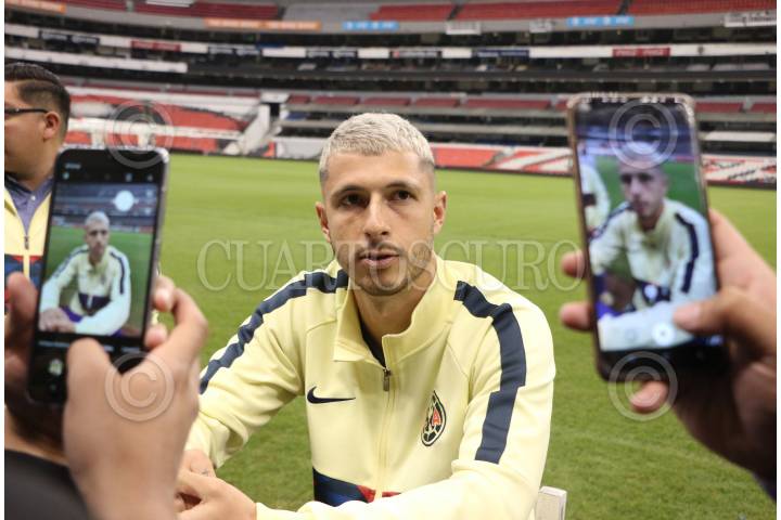 Guido Rodríguez, mediocampista mdel Club America, durante el "Día de Medios", previo al partido de vuelta de la final de la Liga MX entre las Águilas del América y los Rayados del Monterrey la cual se disputará en el Estadio Azteca.