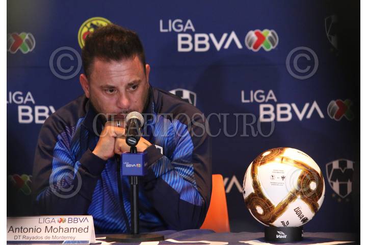 Antonio el "Turco" Mohamed, técnico del Club Monterrey, durante la conferencia de prensa en el Día de Medios previo al partido de vuelta de la final de la Liga MX entre las Águilas del América y los Rayados del Monterrey la cual se disputará en el Estadio Azteca.