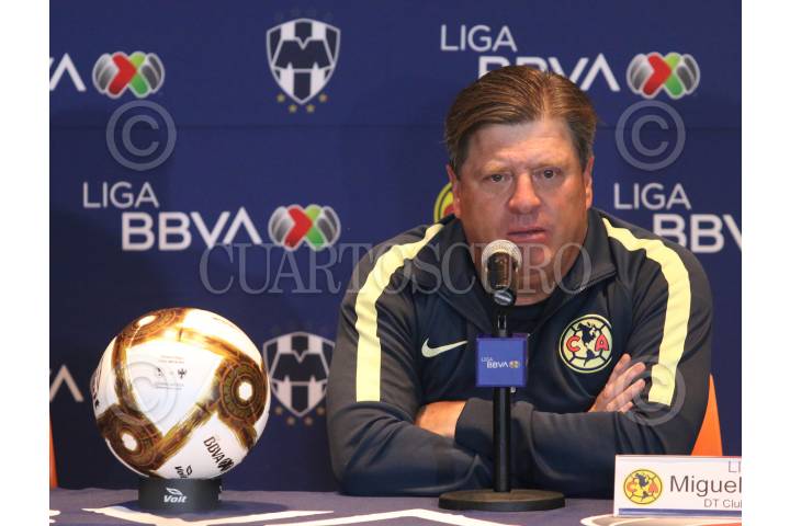 Miguel Herrera, técnico del Club America, durante la conferencia de prensa en el Día de Medios previo al partido de vuelta de la final de la Liga MX entre las Águilas del América y los Rayados del Monterrey la cual se disputará en el Estadio Azteca.