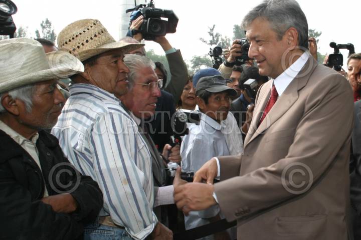 MEXICO, D.F. 11OCTUBRE2004.- Andrés Manuel López Obrador, jefe de gobierno del D. F. saluda a trabajadores del TecnoParque, complejo industrial que inauguró en Azcapotzalco. FOTO: Nelly Salas/CUARTOSCURO.COM