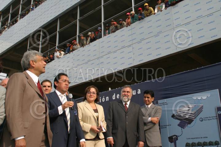 MEXICO, D.F. 11OCTUBRE2004.- Marcos Shabot, Jenny Saltien, Andrés Manuel López Obrador, jefe de gobierno del D. F. y Sandy Flockhart realizan un recorrido por el TecnoPaque, complejo industrial que inauguraron el Azcapotzalco. FOTO: Nelly Salas/CUARTOSCURO.COM