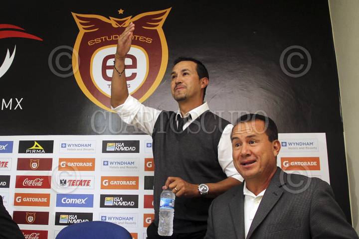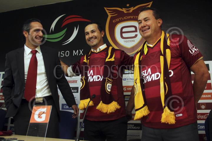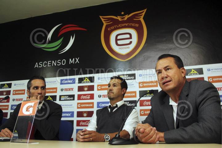 ZAPOPAN, JALISCO 17DICIEMBRE2012.- Esta tarde en el campamento del equipo de los Estudiantes Tecos se llevo a cabo una rueda de prensa, encabezada por Juan Carlos Leaño, esto para hacer oficial la venta de la escuadra al club Pachuca, en la misma se dieron a conocer tanto como el DT. Manuel Vidrio, así como al Director Deportivo del club, Efraín Flores, posteriormente fueron presentados ante el plantel de jugadores que dirigirán el próximo Torneo Clausura 2013 de la Liga de Ascenso MX. FOTO: FERNANDO CARRANZA GARCÍA /CUARTOSCURO.COM