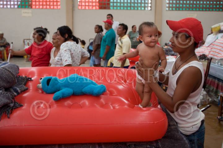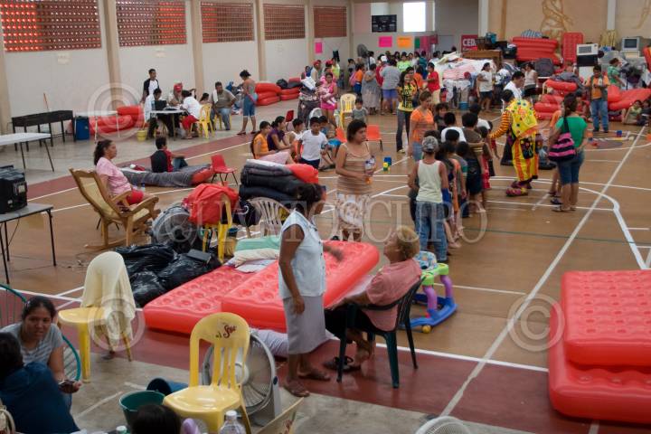 LERDO DE TEJADA, VERACRUZ, 03SEPTIEMBRE2010.- Afectados por las intensas lluvias que han azotado esta región del país, habitan en un albergue que ha sido habilitado mientras disminuye el nivel del agua y puedan regresar a sus hogares. FOTO: GUILLERMO PEREA/CUARTOSCURO.COM
