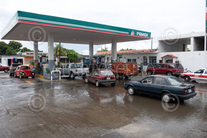 LERDO DE TEJADA, VERACRUZ, 03SEPTIEMBRE2010.- Afectados por las intensas lluvias que han azotado esta región del país, acudieron a las gasolinera para prevenir un posible desabasto ya que se prevén intensas lluvias para este fin de semana. FOTO: GUILLERMO PEREA/CUARTOSCURO.COM