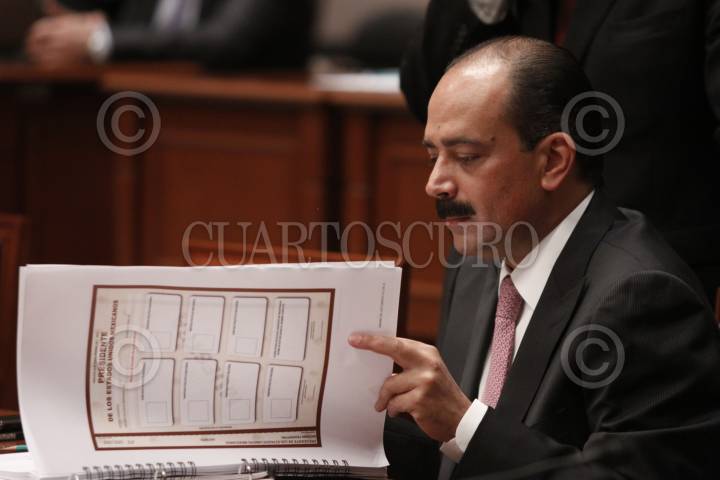 MÉXICO, D.F., 25AGOSTO2011.- Sebastián Lerdo de Tejada durante la sesión extraordinaria del Instituto Federal Electoral revisa el formato de boleta para la elección presidencial del 2012. FOTO: IVÁN STEPHENS/CUARTOSCURO.COM