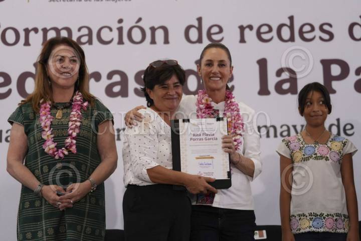 CUAUTLA, MORELOS, 14MAYO2025.- Mujeres durante su mensaje en el evento Tejedoras de la Patria, un programa del gobierno federal para garantizar a las mujeres una vida sin violencia. FOTO: PRESIDENCIA/CUARTOSCURO.COM