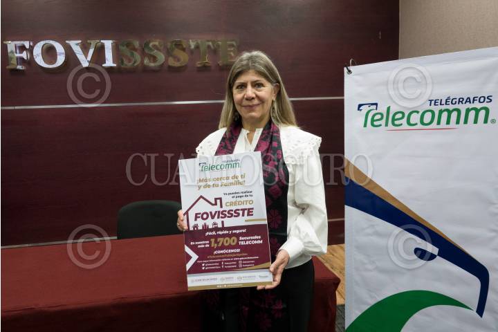 María del Rocío Mejía, directora de Telecomunicaciones México (TELECOMM), durante la presentación de pagos de créditos FOVISSTE en sucursales Telecomm, realizado en las oficinas centrales de FOVISSTE