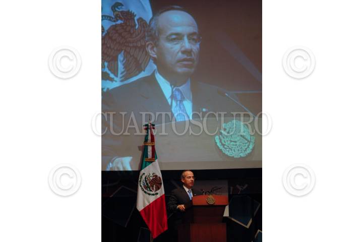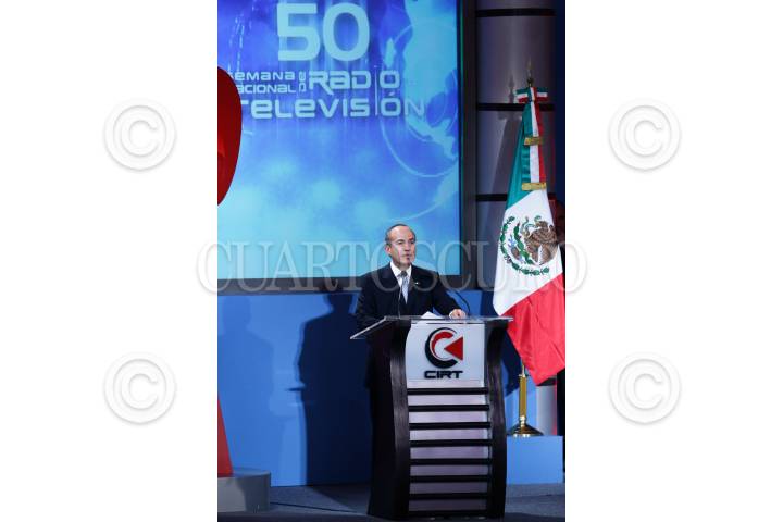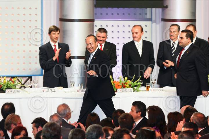 MÉXICO, D.F., 16OCTUBRE2008.- Felipe Calderón Hinojosa, presidente de México, durante la comida de la 50a Semana de la Radio y la Televisión. FOTO: ISAAC ESQUIVEL/CUARTOSCURO.COM