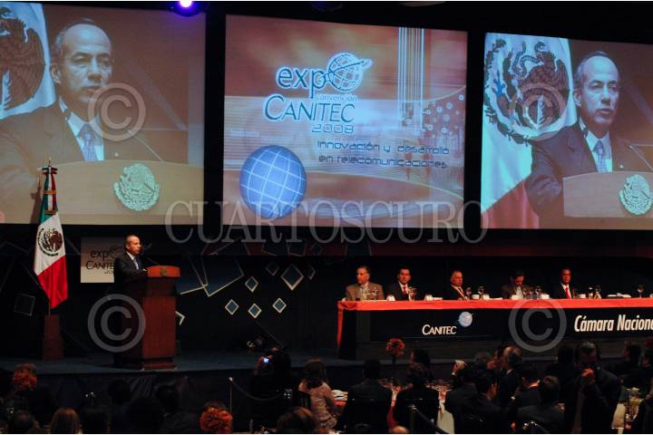 MÉXICO D.F., 24ABRIL2008.- El presidente Felipe Calderón Hinojosa, durante la Inauguración de la Expo-Convención Canitec 2008. FOTO: RODOLFO ANGULO/CUARTOSCURO.COM