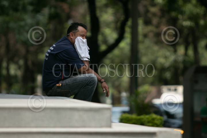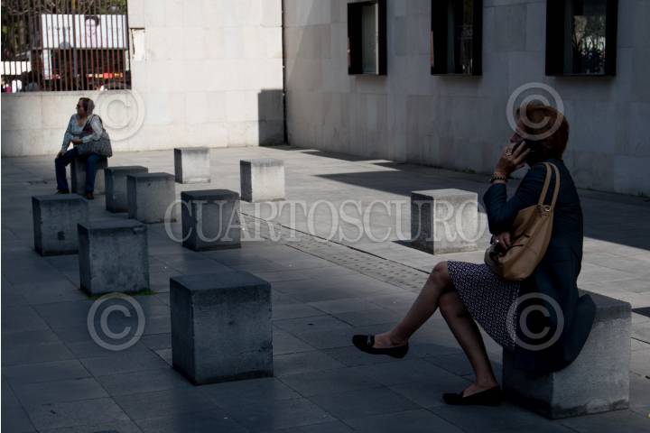 CIUDAD DE MÉXICO, 10ENERO2019.- Una mujer charla por teléfono en la Plaza Juarez, ubicada en avenida Juárez frente a la sede de la cancillería. FOTO: MOISÉS PABLO /CUARTOSCURO.COM