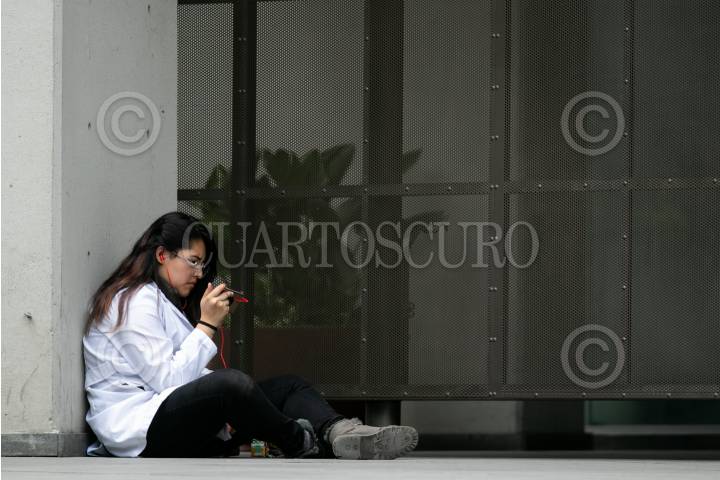 CIUDAD DE MÉXICO, 18ENERO2018.- Una mujer habla por teléfono por los pasillos del Centro Nacional de las Artes (Cenart). FOTO: MOISÉS PABLO /CUARTOSCURO.COM