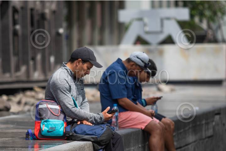 Capitalinos utilizan sus celulares en diferentes puntos de la ciudad durante la Emergencia Sanitaria por Covid-19. Las compañías telefónicas preparan un plan de llamadas y menajes para mantener comunicados a sus usuarios.