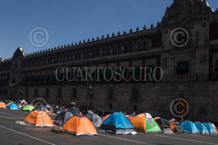 Normalistas chiapanecos se instalaron en plantón sobre el circuito de Plaza de la Constitución, frente al Palacio Nacional, para exigir sus plazas en el sistema de telesecundaria