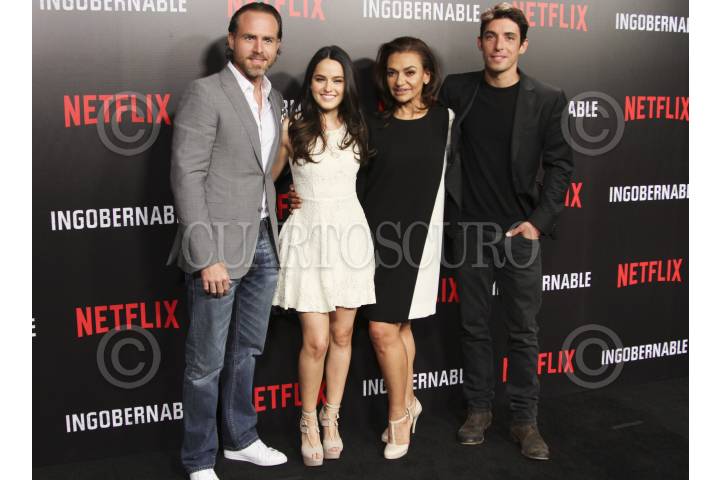 CIUDAD DE MÉXICO, 22MARZO2017.- Los actores Erick Hayser , Alicia Jaziz, Aida López y Alberto Guerra, posa para los fotógrafos en la presentación de la serie la “Ingobernable”, que es producida por Epigmenio Ibarra y Verónica Velasco, la cual saldrá al aire el próximo 24 de marzo por un canal de paga. FOTO: ANTONIO CRUZ /CUARTOSCURO.COM