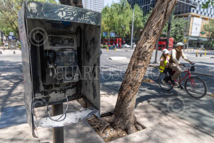 CIUDAD DE MÉXICO, 06ABRIL2025.- Una caseta de Telmex luce totalmente desvencijado en avenida Reforma, este tipo de servicio de telecomunicaciones a quedado en desuso por el avance de los celulares. FOTO: MOISÉS PABLO/CUARTOSCURO.COM