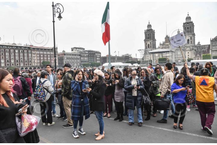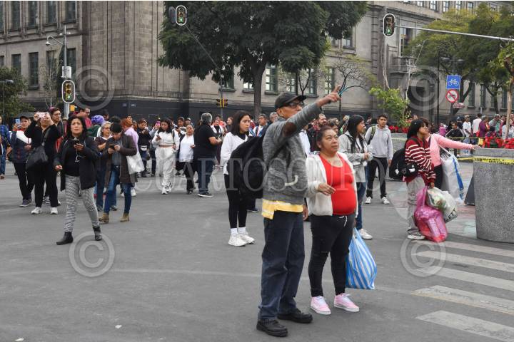 CIUDAD DE MÉXICO, 06OCTUBRE2023.- Personas salieron a resguardarse a la explanada del Zócalo capitalino tras activarse la alarma sísmica por un sismo de magnitud 5.8 con epicentro al sur de Chiautla de Tapia en Puebla, de acuerdo a los primeros informes del Sismológico Nacional. FOTO: MARIO JASSO/CUARTOSCURO.COM