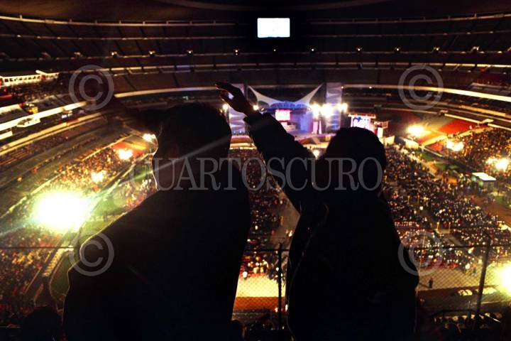 La noche del sabado el estadio azteca se llenó de seguidores de los Temerarios, quienes ofrecieron un concierto para los mas de 70mil fans que acudieron al evento a pesar de la lluvia. FOTO: Victoria Valtierra/CUARTOSCURO/COM