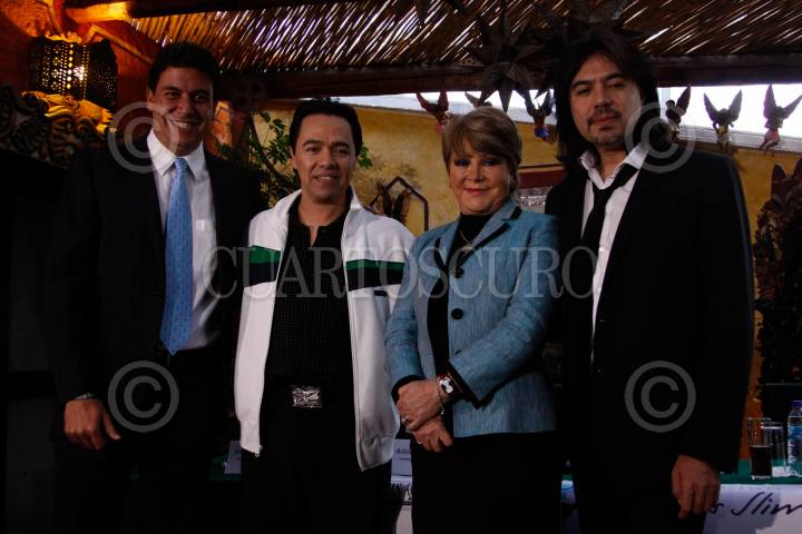 MÉXICO, D.F., 22FEBRERO2010.- Arturo Elías Ayub, representante de la fundación Carlos Slim; Gustavo Ángel, cantante del dueto "Los Temerarios"; Lolita Ayala, presidenta de la fundación "Solo por Ayudar"; y Adolfo Ángel, cantante del dueto "Los Temerarios", anunciaron que se realizará un concierto en beneficio de los damnificados de Chalco y Valle de Chalco el próximo 27 de febrero en el Deportivo Solidaridad. FOTO: IVÁN STEPHENS/CUARTOSCURO.COM