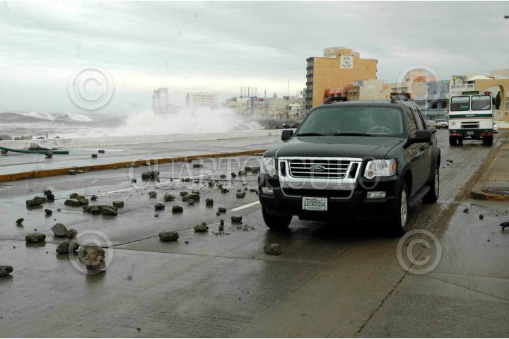 VERACRUZ, VERACRUZ, 23OCTUBRE2007.- Desde la madrugada de este día, las costas veracruzanas sufren los embates de fuertes vientos provocados por la presencia del frente frío número tres, mismos que alcanzaron rachas de más de cien kilómetros por hora. En la zona conurbada Veracruz-Boca del Río este fenómeno provocó la caída de árboles, espectaculares y lluvia. Varias avenidas importantes se vieron afectadas por estas causas y en áreas turísticas la mayoría de los negocios sufrieron afectaciones. El puerto fue cerrado a toda navegación. FOTO: JOSÉ CANDELARIO/CUARTOSCURO.COM