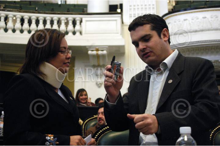 MÉXICO D.F. 27DICIEMBRE2006.- Los diputados locales Celina Ortega Saavedra y Jorge Triana Tena ambos del PAN, duarnte la sesión en la Asamblea Legislativa. FOTO: GUILLERMO PEREA /CUARTOSCURO.COM