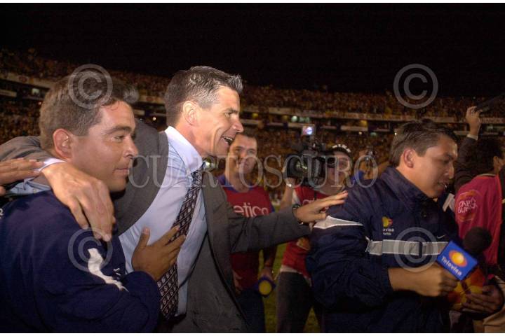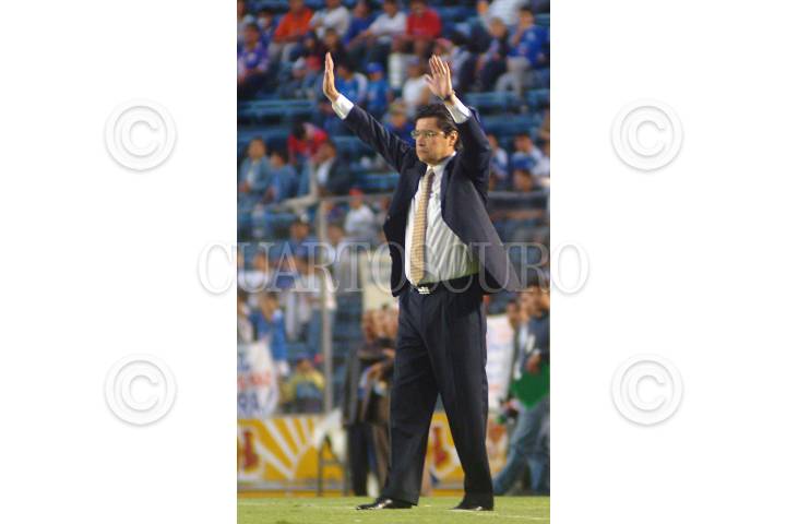 México, D.F. 13 MARZO2004.- Luis Fernando Tena consiguió la primera victoria al frente del equipo Cruz Azul como director técnico al vencer dos goles por cero a "Los Gallos Blancos" de Querétaro en la continuación de la jornada 10 del torneo de clausura 2004. FOTO: Iván Stephens/CUARTOSCURO.COM