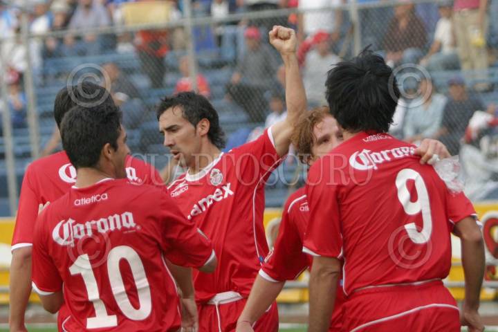 MEXDF16OCT2004.- El equipo de Toluca festeja su primer gol al Cruz Azul durante el partido esta tarde en donde Toluca derrotó 3-1 a la máquina cementera del Cruz Azul, la cual queda fuera de la clasificación general, en la fecha diez del Campeonato de Apertura 2004. FOTO: Eunice Adorno/CUARTOSCURO.COM
