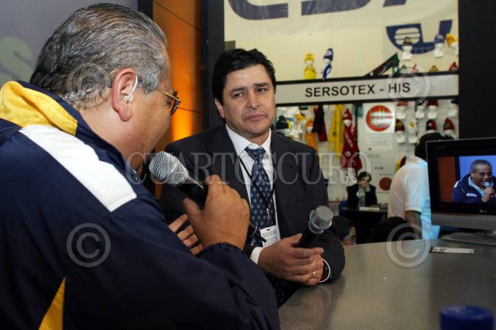 MEXICO, DF 20JULIO2005.- El extecnico del Cruz Azul, Luis Fernando Tena es entrevistado en unos de los stands del Futbol Expo-Show. FOTO: Miguel Dimayuga/CUARTOSCURO.COM