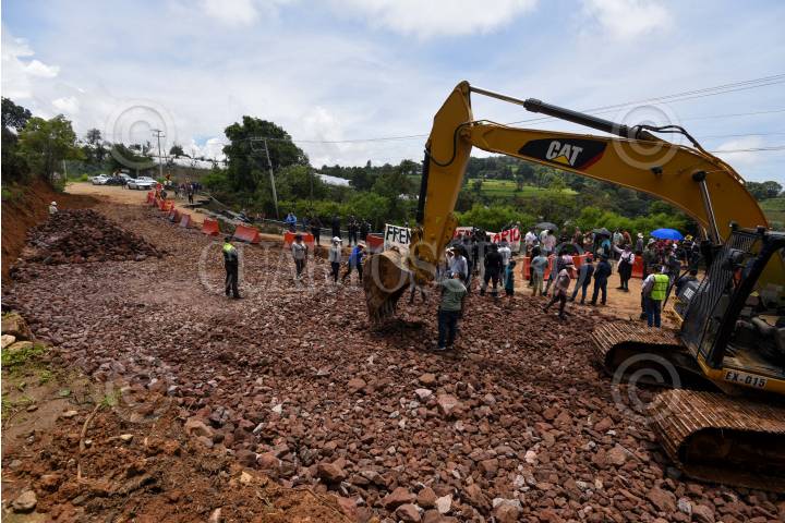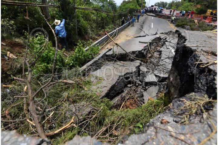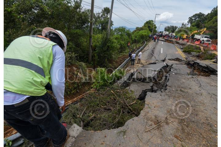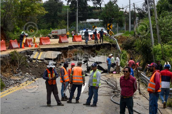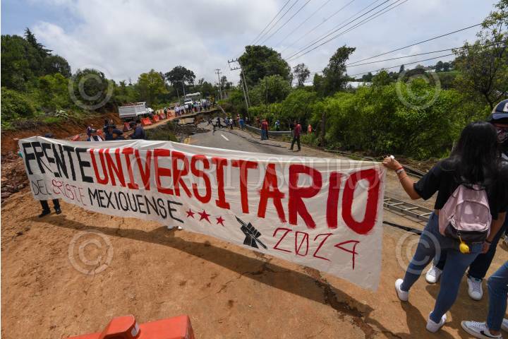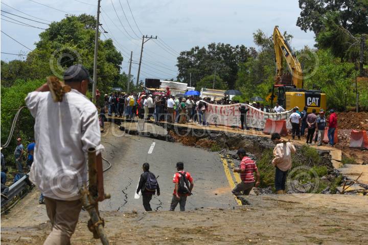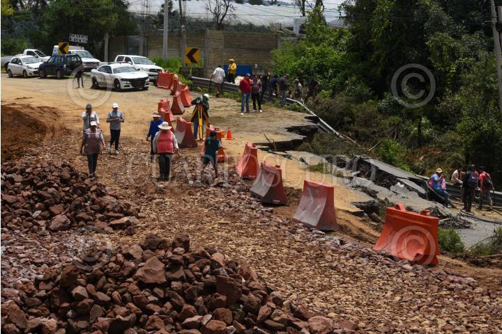 TENANCINGO, ESTADO DE MÉXICO, 31JULIO2024.- Estudiantes, vecinos y autoridades de Tenancingo se dieron cita en el kilómetro 38 de la carretera Tenango-Tenancingo en donde desde la semana pasada se presentó un hundimiento lo que provocó el cierre de esta vialidad, en donde pidieron que autoridades estatales y federales rehabiliten esta carretera a la brevedad posible, ante las afectaciones que ha sufrido la población en general, sobre todo económicamente; la Secretaría de Infraestructura, Comunicaciones y Transportes (SICT) inició los trabajos de rehabilitación de un carril alterno para el paso de al menos vehículos no pesados, de acuerdo a autoridades municipales por esta vía llegan a circular hasta 18 mil autos. FOTO: CRISANTA ESPINOSA AGUILAR /CUARTOSCURO.COM