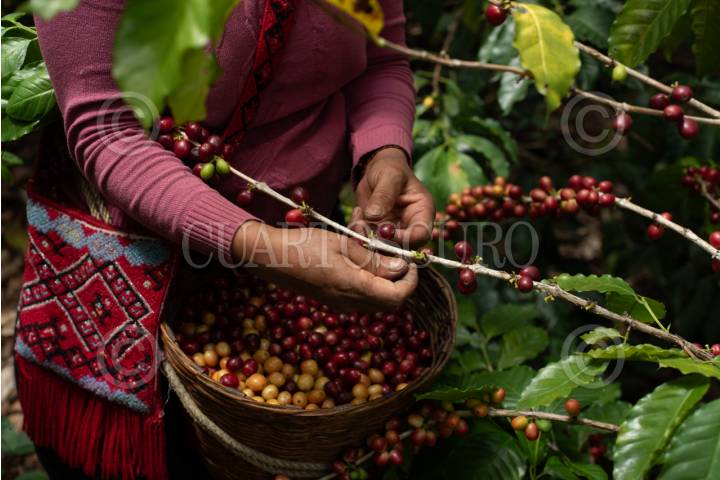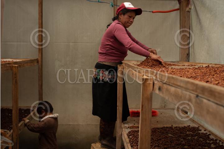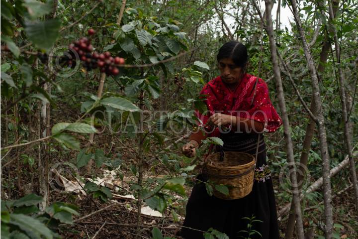 TENEJAPA, CHIAPAS, 21MARZO2024.- Mujeres organizadas de la comunidad de Yashanal han profesionalizado sus procesos para obtener mejor calidad en sus granos de café, todas recuerdan trabajar con sus familias desde niñas en los cafetales, pero desde hace unos años decidieron organizarse y mejorar su producto para venderlo a mejores precios en el mercado y comercializar ellas mismas eliminando a intermediarios. El camino como cuentan no ha sido fácil pero disfrutan el aprendizaje desde la siembra de café hasta el tostado. A 1800 metros de altura sobre el nivel del mar, Verónica, Lucia, Juana y Antonia en compañía de otras mujeres que forman parte de la cooperativa aprovechan la temporada de corte para seleccionar los mejores frutos, ahora que han aprendido el proceso de tratamiento llamado honey disponen las mejores granos para su producción, ya que el precio en el mercado es más alto que en el proceso natural o lavado. Chiapas de los estados con mayor producción de café en el país. FOTO: ISABEL MATEOS/CUARTOSCURO.COM
