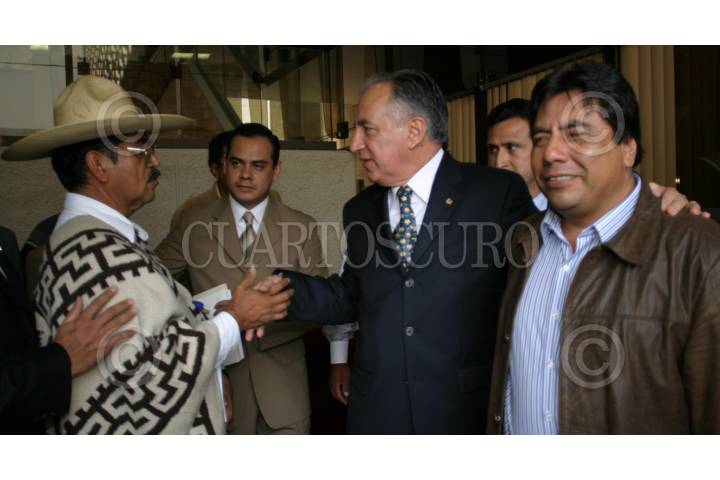 México, DS. F. 24 Junio 2004.- Florencia Salázar Adame, titular de la Reforma Agraria y Teofilo Manuel García, presidente de la comisión de la Reforma Agraria en la cámara de diputados, son abordados por un campesino al termino del ciclo de mesas redondas El Méxcio Agrario del Siglo XXI. FOTO: Nelly Salas/CUARTOSCURO.COM