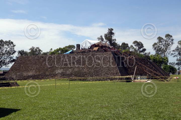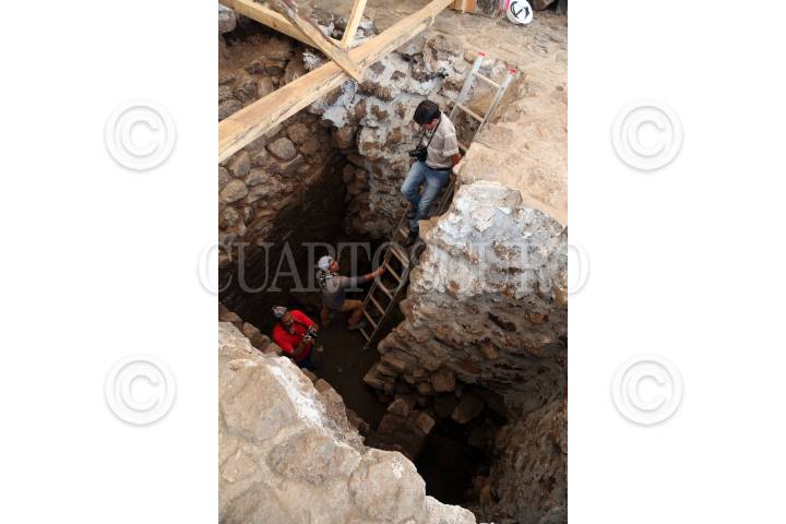 CUERNAVACA, MORELOS, 11JULIO2018.- Devela el pasado sismo del 19 de septiembre el que sería el edificio más antiguo localizado en la zona arqueológica de Teopanzolco. Así lo informaron las arqueólogas Bárbara Konieczna y Georgia Iris Bravo López. Se trata de una estructura, una banqueta y restos de una pilastra. FOTO: MARGARITO PÉREZ RETANA /CUARTOSCURO.COM