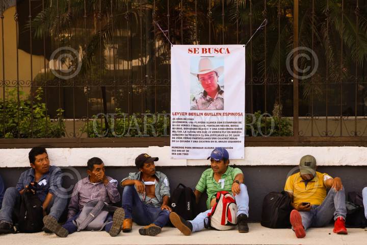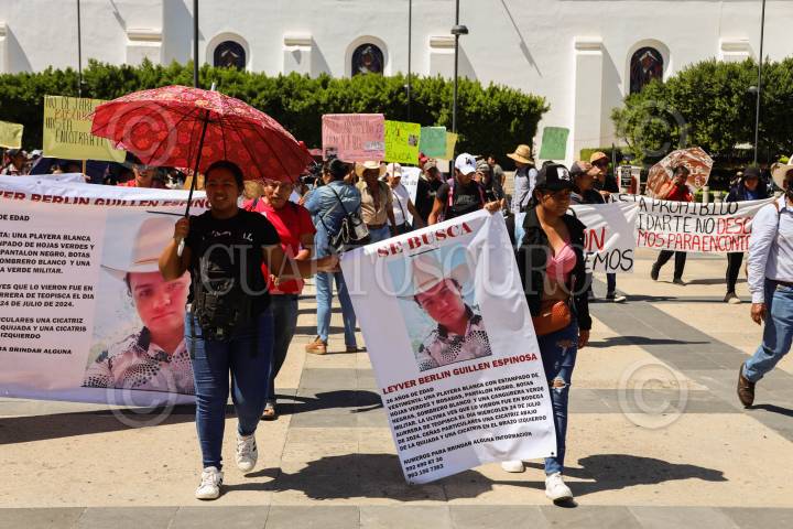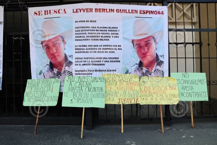 TUXTLA GUTIERREZ, CHIAPAS, 01AGOSTO2024.- Pobladores del ejido Nuevo León perteneciente al municipio de Teopisca, Chiapas, marcharon en la capital del estado para exigir la aparición con vida de Leyver Berlín Guillén Espinosa desaparecido desde el pasado miércoles 24 de Julio. A las afueras del Palacio de Gobierno los familiares y decenas de pobladores se manifestaron con pancartas y mensajes de ayuda. De acuerdo a las declaraciones el último contacto que se tuvo con el joven se supo que estaba en la tienda de Bodega Aurrera de dicho municipio comprando cosas para su negocio, sin embargo, después perdieron toda comunicación. Piden al gobierno ayuda para poder dar con su paradero y pueda volver a casa sano y salvo. En Chiapas continúa a la alza el número de personas desaparecidas. FOTO: ISABEL MATEOS /CUARTOSCURO.COM