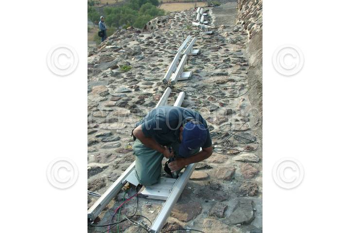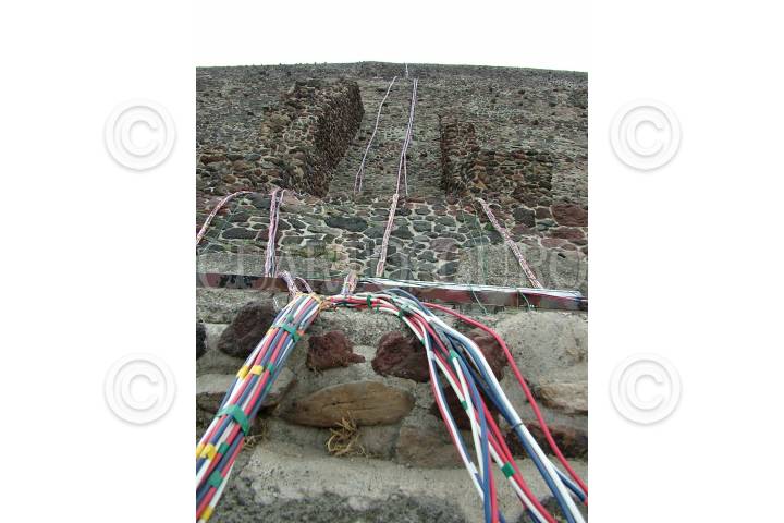 TEOTIHUACÁN, ESTADO DE MÉXICO, 15ENERO2009.- Continúa la polémica sobre la instalación de equipo de iluminación y sonido en las pirámides del Sol y la Luna que conformarán el espectáculo "Resplador Teotihuacano", aunque las autoridades del INAH han dicho que estas no se detendrán por que las zonas arqueologicas no sufren ningún daño y el gobierno estatal también ha mostrado su apoyo por que dicen que este tipo de acciones beneficiarán a la atracción de más turismo, otros sector de la sociedad señala que esto solamente se esta enfocando a la explotación comercial y no beneficia la conservación de este patrimonio de la humanidad catalogado por la UNESCO. FOTO: MARIO NULO/CUARTOSCURO.COM